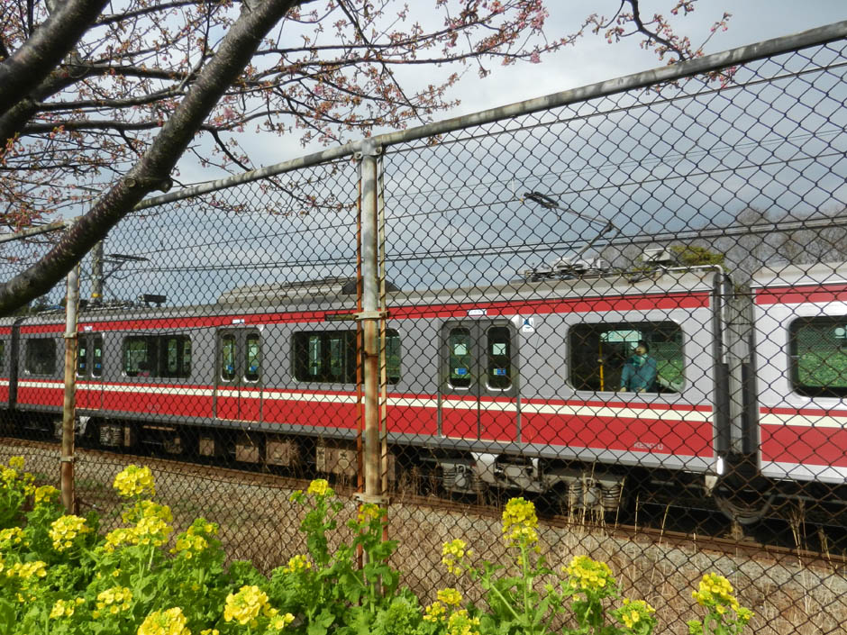 京急の赤い車体と桜が一緒に撮影出来るので、鉄道マニアもちらほらいました。